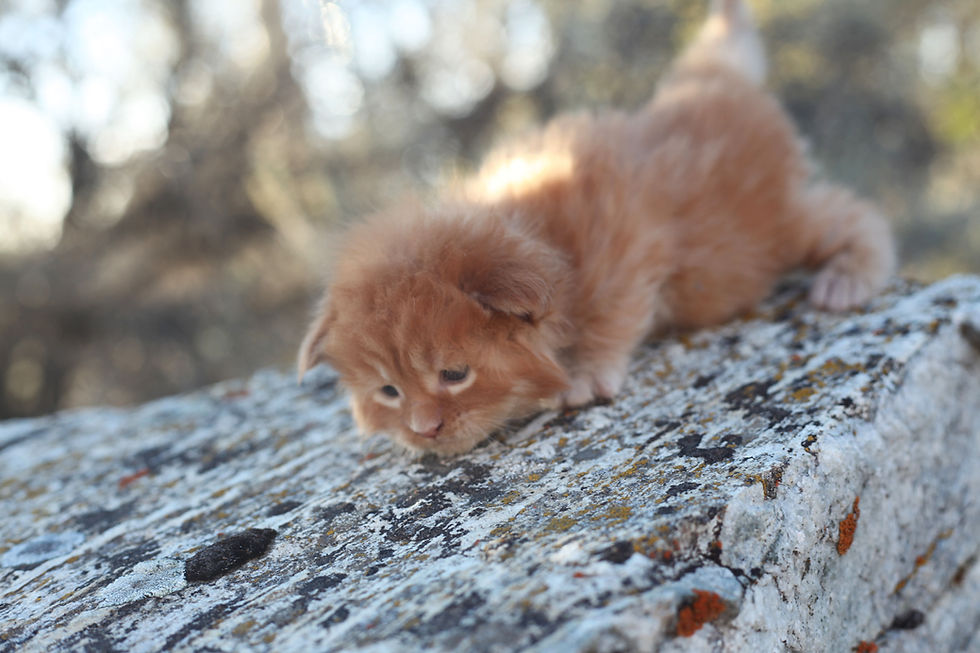If you zoom in on this girl's muzzle, you'll see that she has the cutest a freckle face. She is in perfect desert camo & ready for hunting season. So far, she's pretty sure of herself. Her eyes just opened & she has a lot of strength for a kitten at this age.